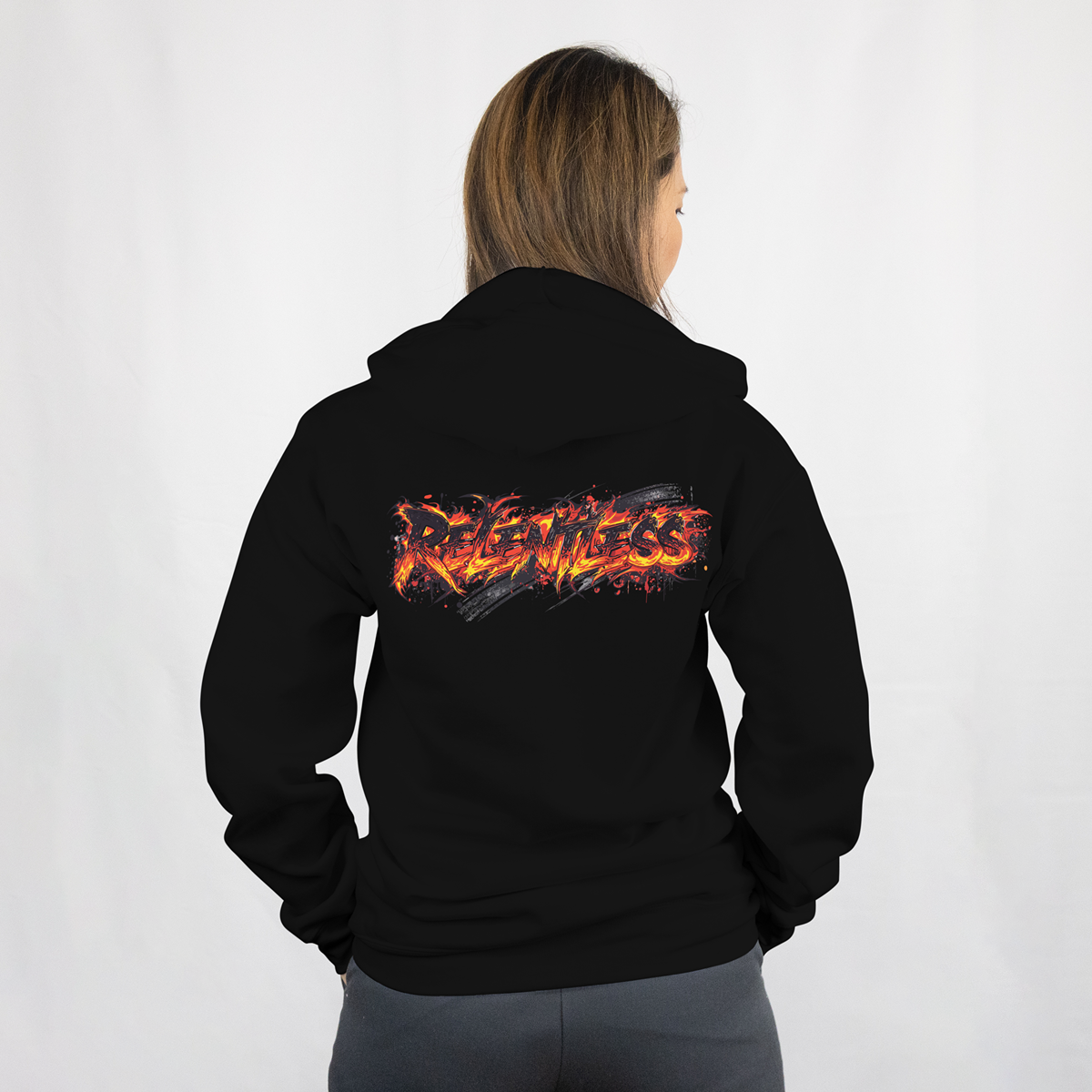 RELENTLESS Street Art Hoodie features an aggressive graffiti-style “RELENTLESS” typography infused with fiery flame effects and dynamic paint splashes. The bold back graphic delivers a powerful visual impact and an unstoppable streetwear attitude built to dominate.