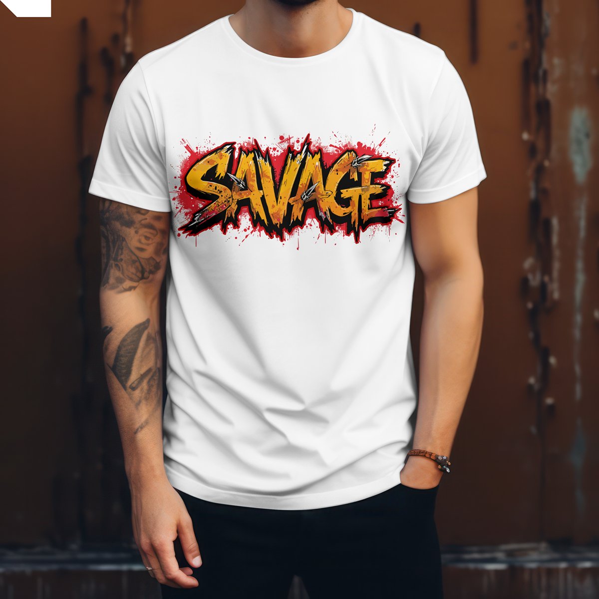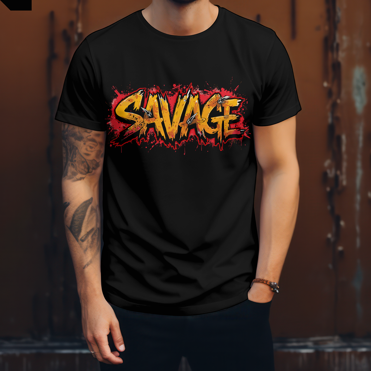 SAVAGE Street Art T-Shirt features an aggressive graffiti-style “SAVAGE” typography combined with bold paint splashes and raw urban textures. The powerful front graphic delivers high visual impact and an edgy streetwear aesthetic made for statement outfits.