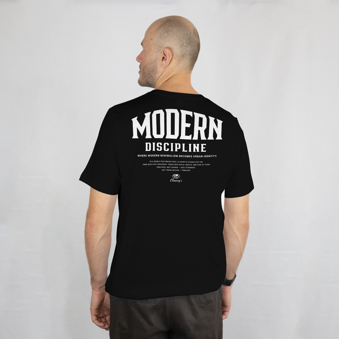 The Modern Discipline T-shirt represents control, consistency, and purpose in a fast-moving world. Featuring a bold typographic back print with refined details, this design reflects a mindset where modern minimalism becomes identity.